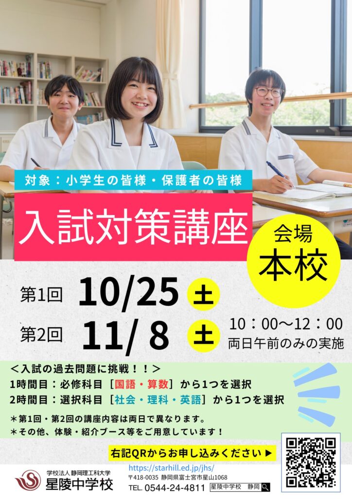 10月25日(土)・11月8日(土)の2回にわたり、中学入試対策講座を開催いたします!ぜひ今後の受験勉強にお役立ていただければ幸いです。