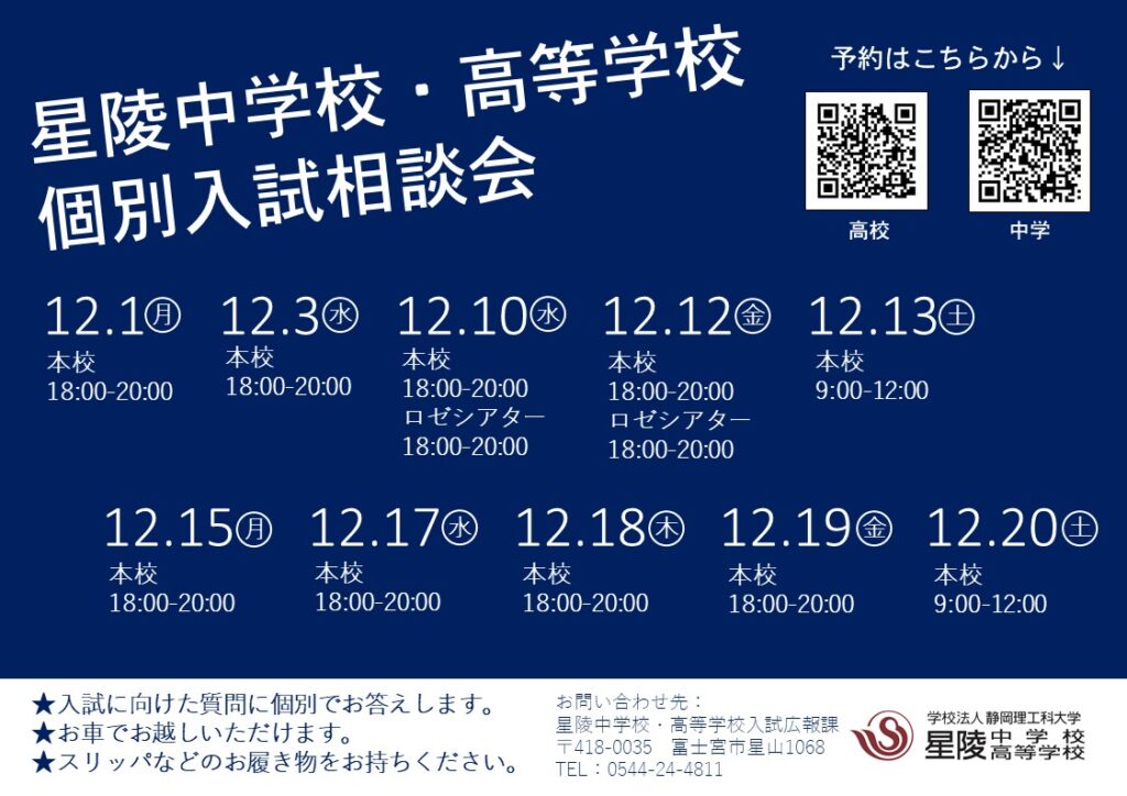 12月から以下の日程で、個別入試相談会(日中・夜間)を集中開催しています。